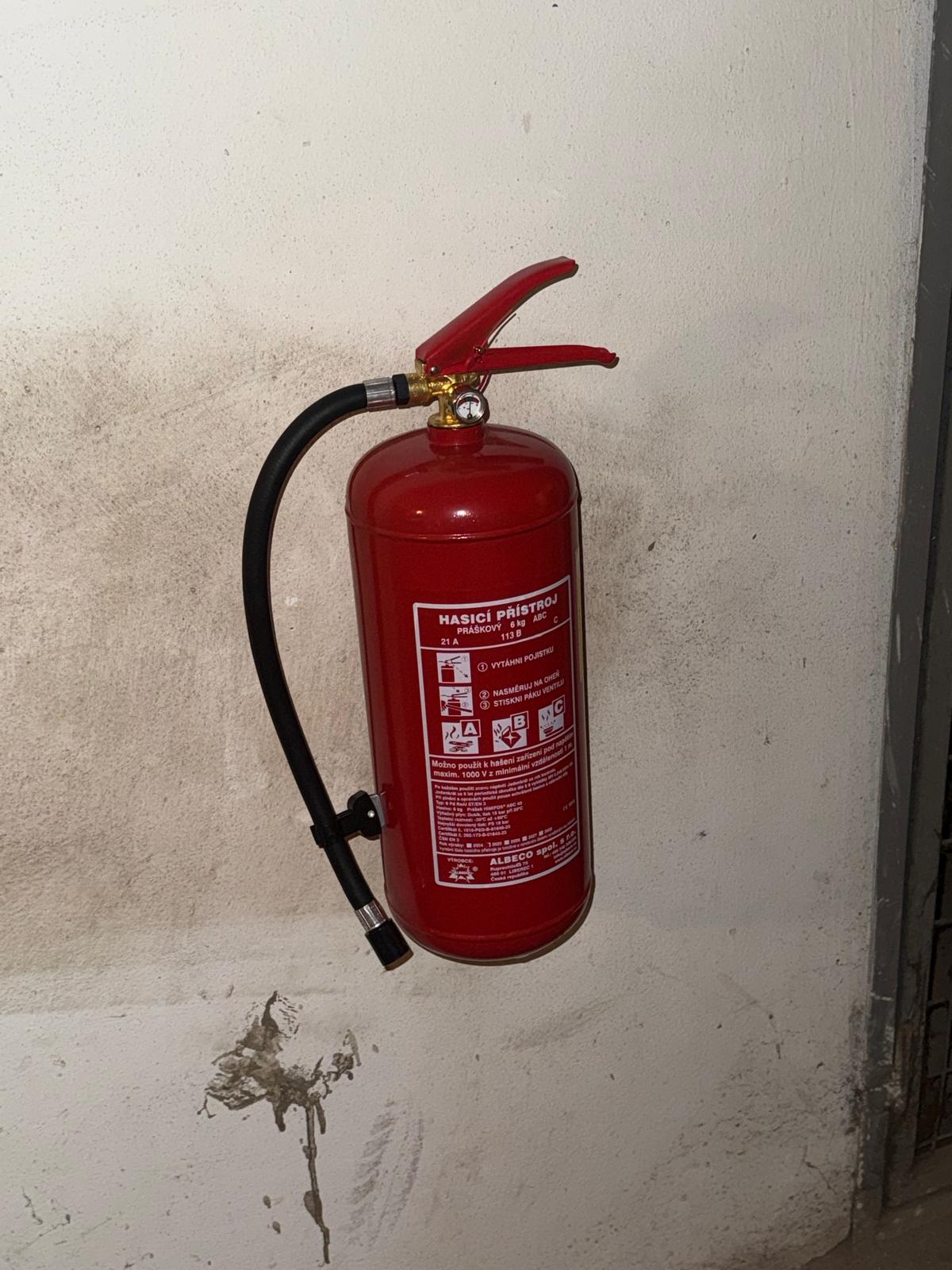 V tomto týdnu bylo realizováno doplnění prvků požární ochrany. Kromě doplnění hasicích přístrojů bylo instalováno označení únikových cest a doplněny hasicí přístroje. V příštím týdnu budou nahrazeny kovové skříňky na dva původní hasicí přístroje. V přípravě je i realizace výměny nouzového osvětlení.